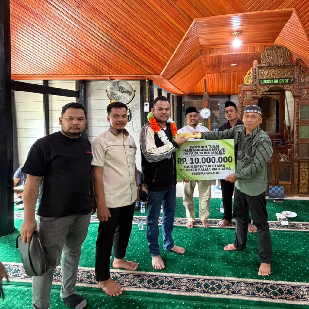 Direktur PT. Green Palma Riau Jaya Pebriyan Winaldi Salurkan Bantuan Untuk Masjid Raya Gunung Malelo