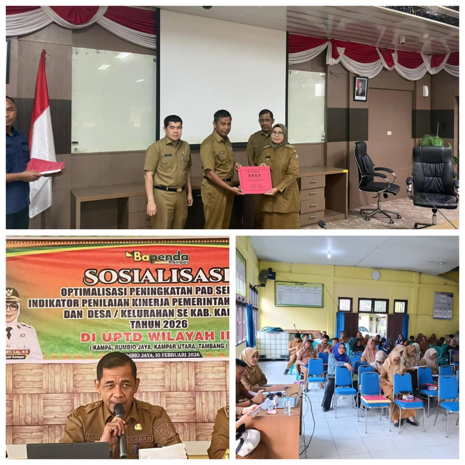 Infokamparupdate.com– BANGKINANG KOTA – Badan Pendapatan Daerah (Bapenda) Kabupaten Kampar melaksanakan rangkaian kegiatan penyerahan Daftar Himpunan Ketetapan Pajak (DHKP) dan Surat Pemberitahuan Pajak Terutang (SPPT) PBB-P2, serta sosialisasi peningkatan Pendapatan Asli Daerah (PAD) pada Selasa, (10/2/26).