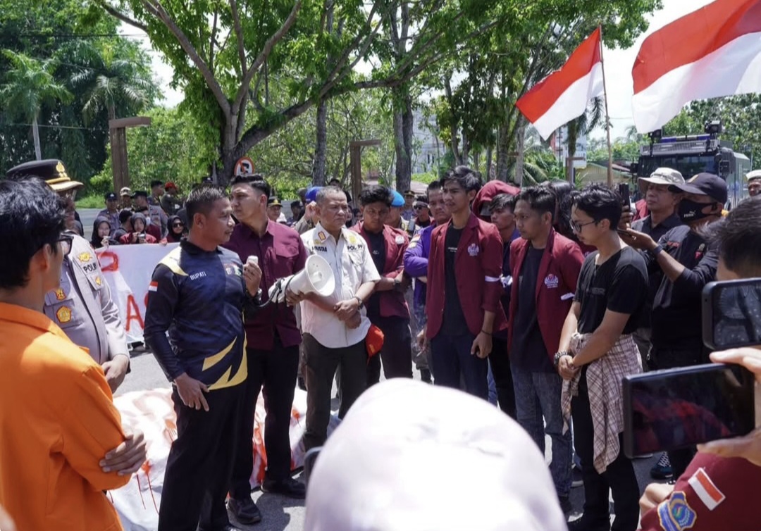 Infokamparupdate.com –BANGKINANG KOTA – Bupati Kampar Ahmad Yuzar menemui langsung ratusan pendemo yang tergabung dalam Aliansi Kampar Bergerak di Depan Rumah Dinas Bupati Kampar pada Rabu, (03/09/25).