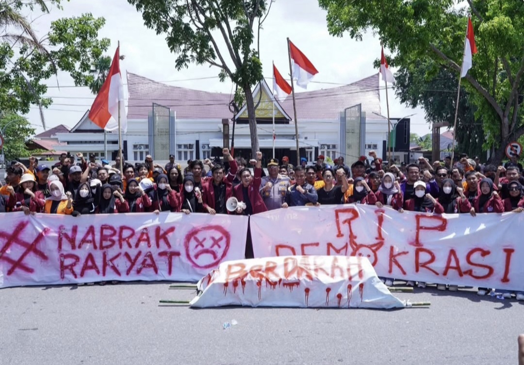 Sebelumnya aksi demo yang di koordinator oleh Badan Eksekutif Mahasiswa (BEM) Sekolah Tinggi Ilmu EKONOMI (STIE) Bangkinang, BEM Universitas Pahlawan, BEM Politeknik Kampar ini menggelar aksi orasi di Kantor DPRD Kampar dan menyampaikan orasi dengan membentangkan Spanduk, Bendera dan Keranda.