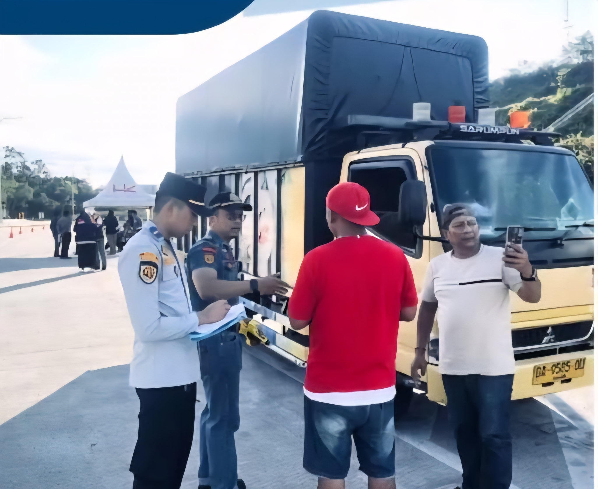 Infokamparupdate.com β XIII KOTO KAMPAR β Dinas Perhubungan (Dishub) Kabupaten Kampar bersama PJR Polda Riau, BPTD Kelas II Riau dan PT Hutama Karya melaksanakan kegiatan sosialisasi serta pendataan kenderaan Over Dimension Over Load (ODOL) di gerbang Tol XIII Koto Kampar Selasa (17/6/26).