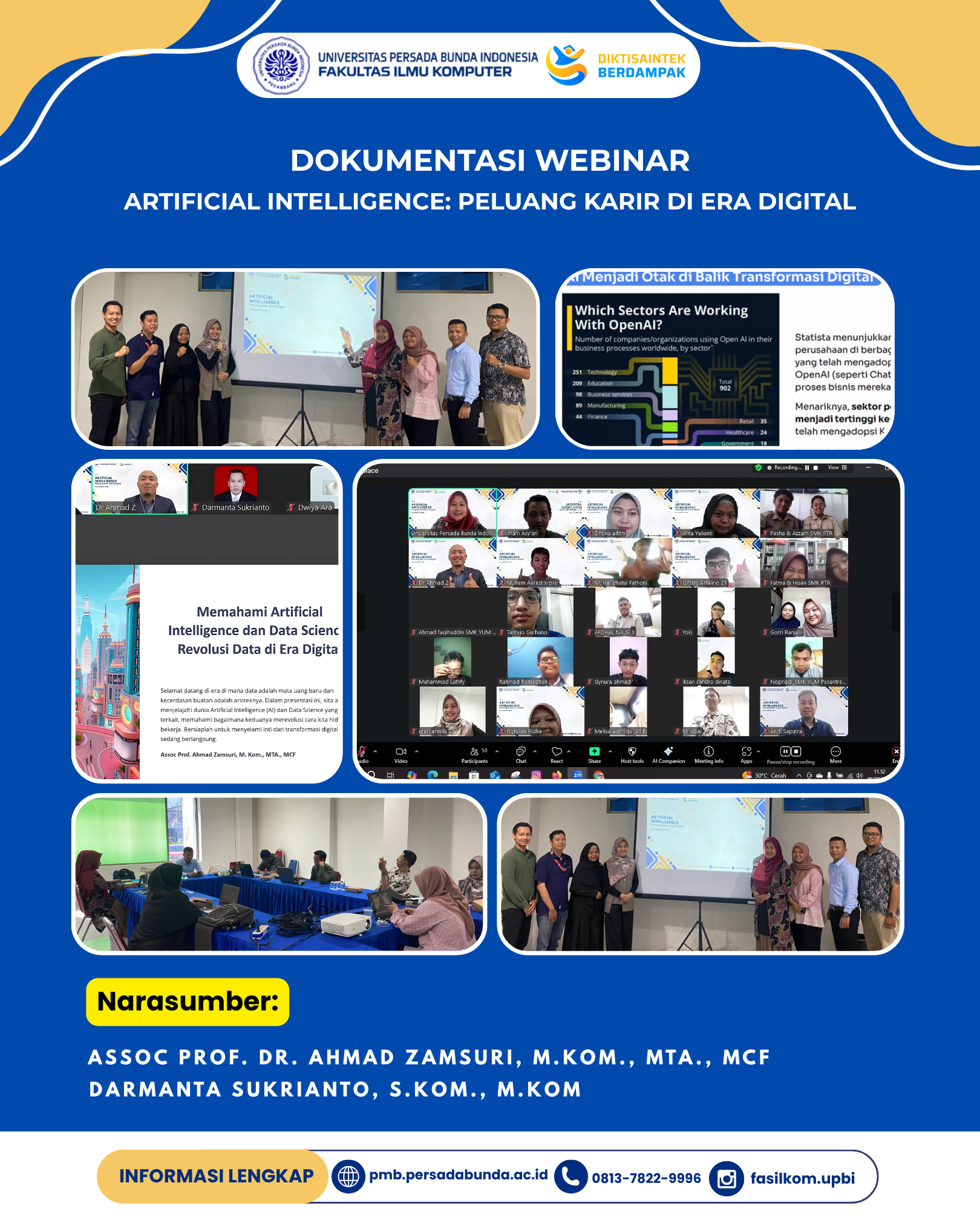 Infokamparupdate.com – Pekanbaru – Fakultas Ilmu Komputer Universitas Persada Bunda Indonesia mengadakan Kegiatan Webinar Artificial Intelligence (AI) Sabtu (22/7/25).